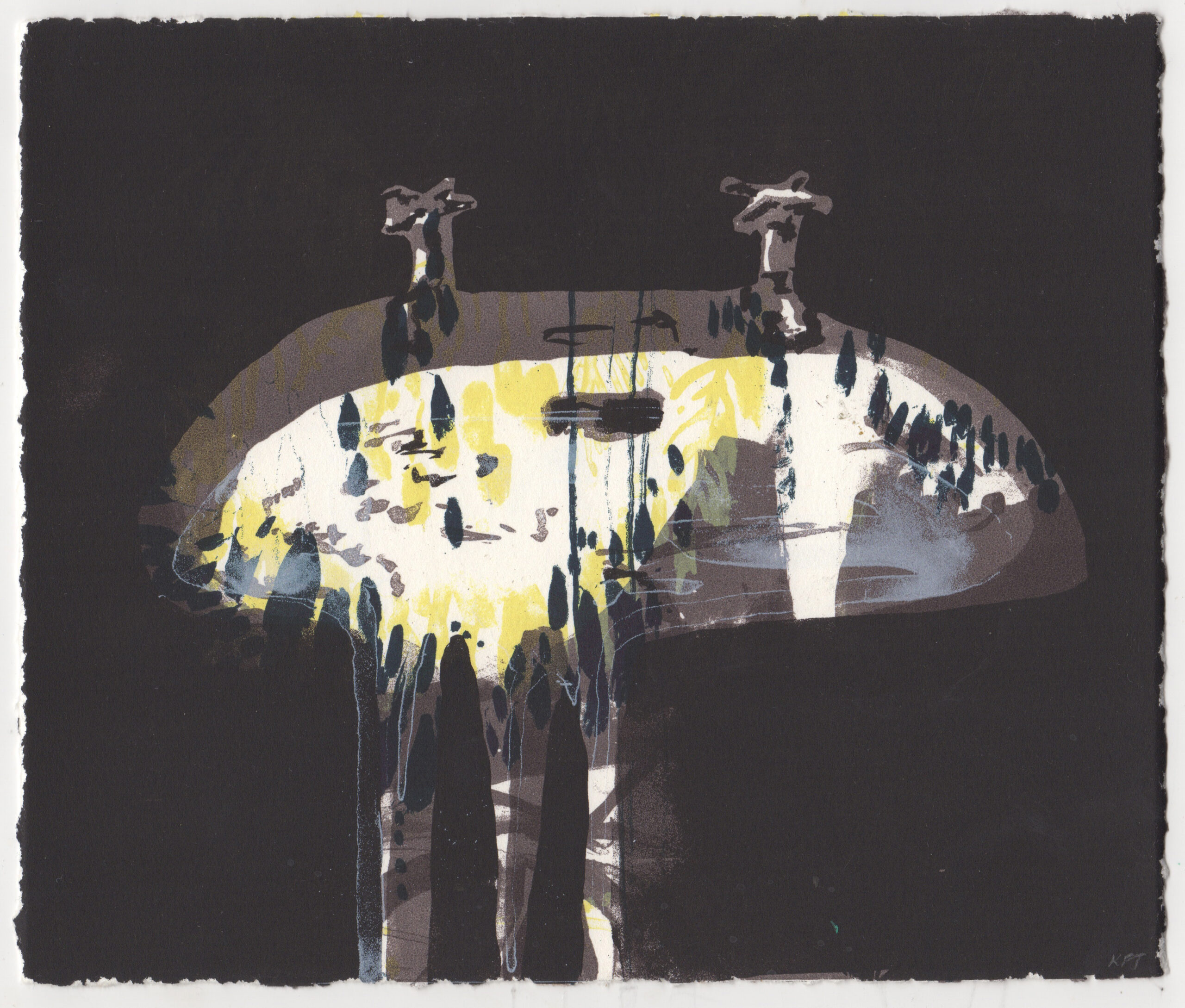 ‘Spill Over’ is a screenprint made with Atelier Ji – It was made after a small watercolour sketch I painted at home while looking after my first child – I think of this motif of an overflowing basin or bath, as something to do with the overwhelm of these first years of a child’s life as experienced by a new mother.