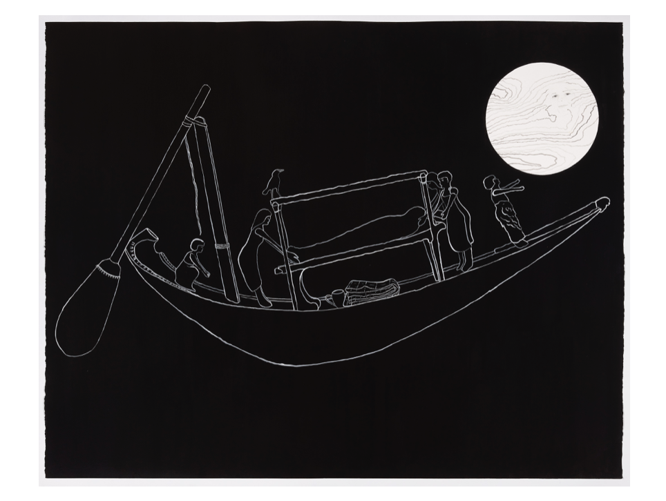 The Send-Off, (2024), 154 x 122cm sumi ink, white ink and watercolour on paper